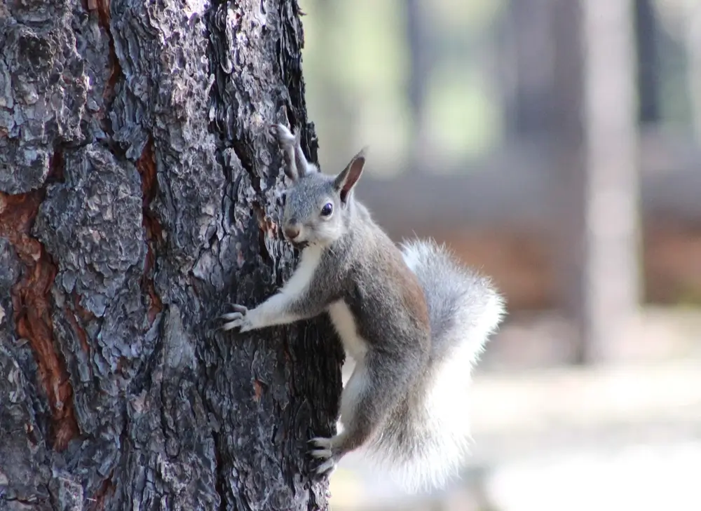 Abert’s squirrels live in coniferous forests with ponderosa pine trees.