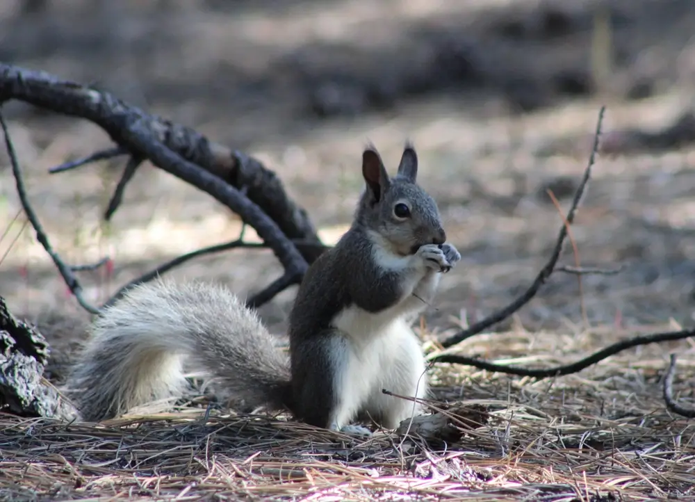 Most of the Abert’s squirrel’s diet is made up of parts of the ponderosa pine. In warm months, it eats the tree’s seeds and buds.