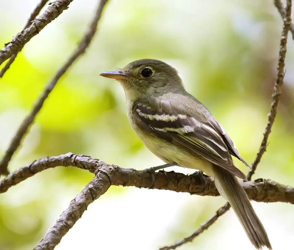 The Acadian flycatcher is a small flycatcher. It is around 5 inches (12.7 cm) in length.
