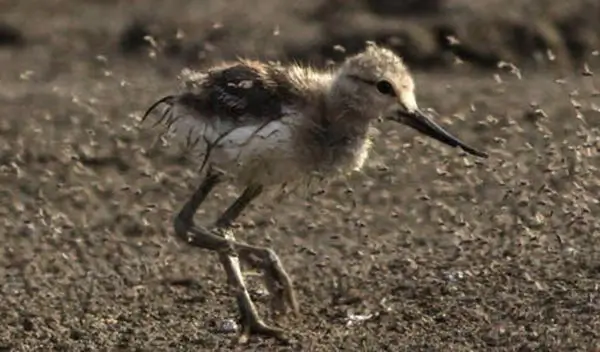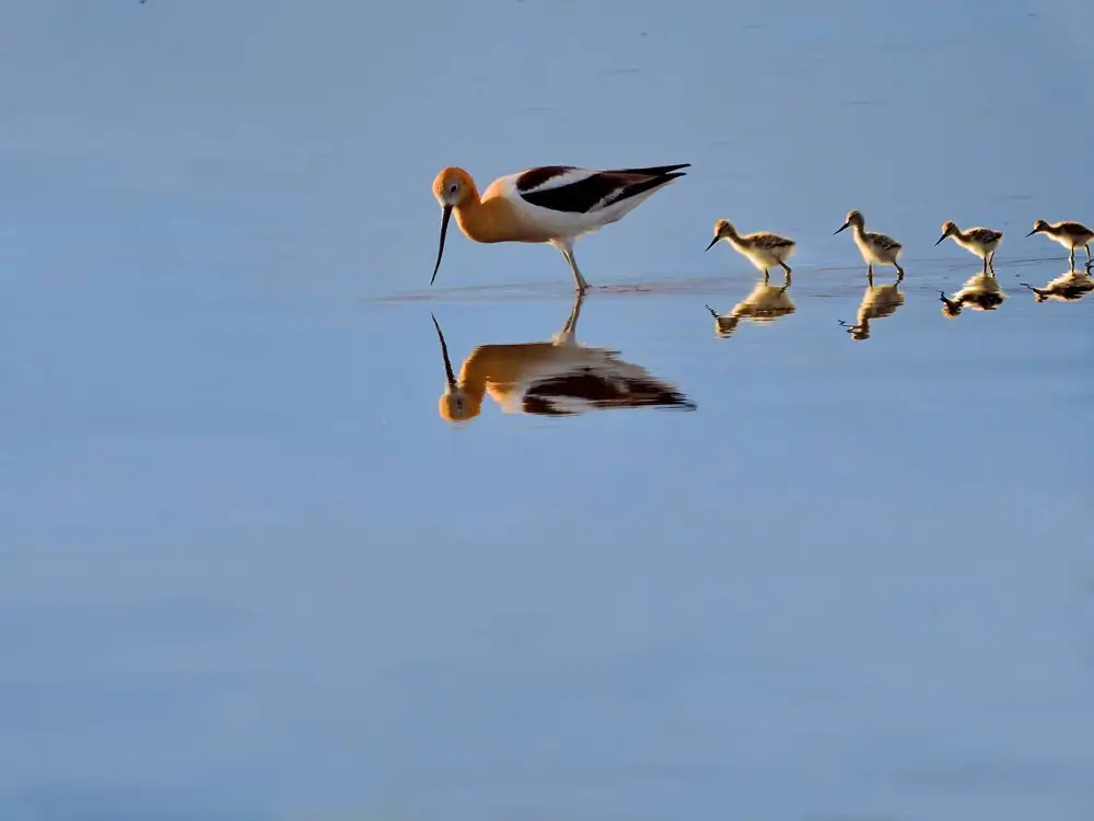 The chicks are precocial. Precocial birds can move around soon after they are born. American avocet chicks can swim and feed themselves soon after they are born, but they won’t fly until they are about a month old.
