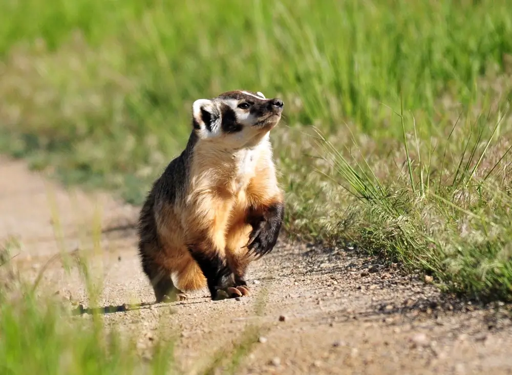 The American badger lives in open areas like plains, prairies, farmland, and the edges of woods.