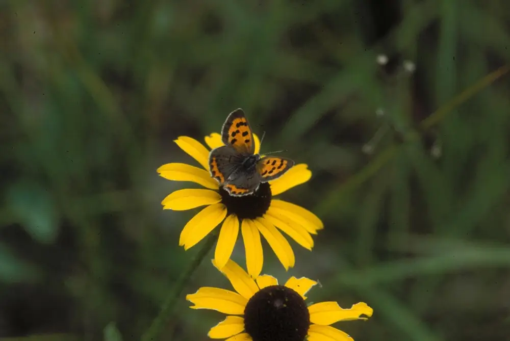 Lowland populations of American coppers are found in pastures, landfills, roadsides, yards, and fields. Arctic and alpine populations are found above the tree line on barren ground and talus slopes. A talus slope is a pile of rocks at the base of a cliff or slope.