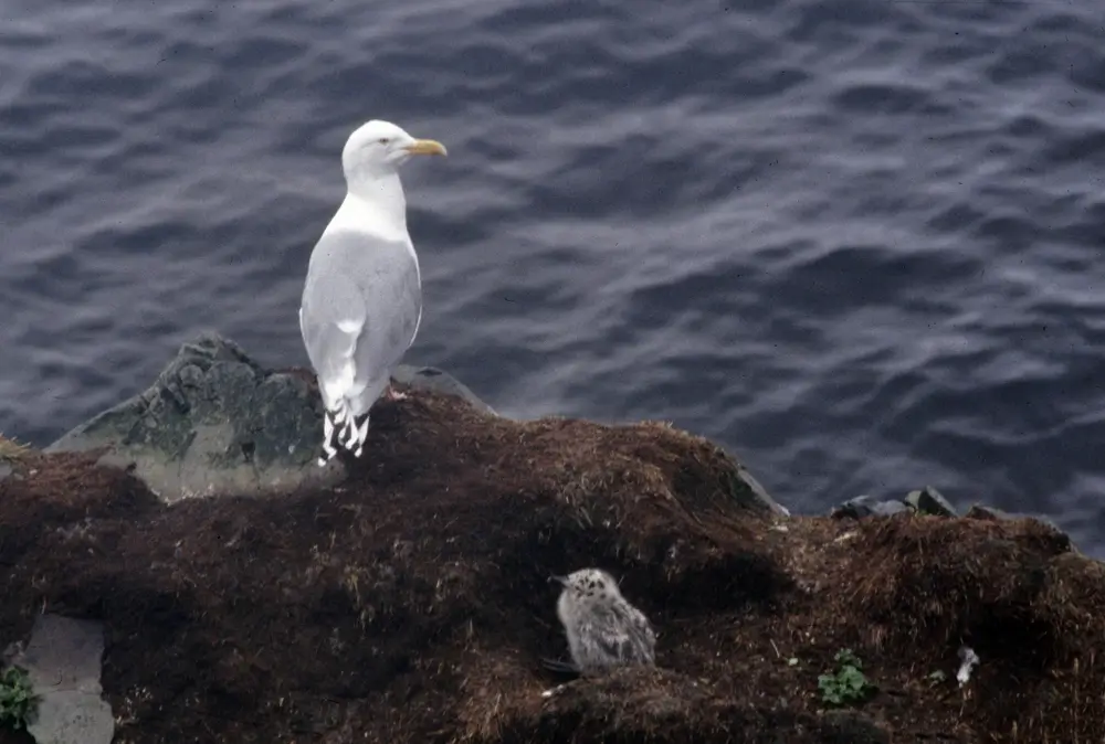 The American herring gull nests in colonies in a variety of habitats, including islands, cliffs, and beaches. The nest site is always near water. It sometimes even builds its nest on the window ledges or roofs of buildings.