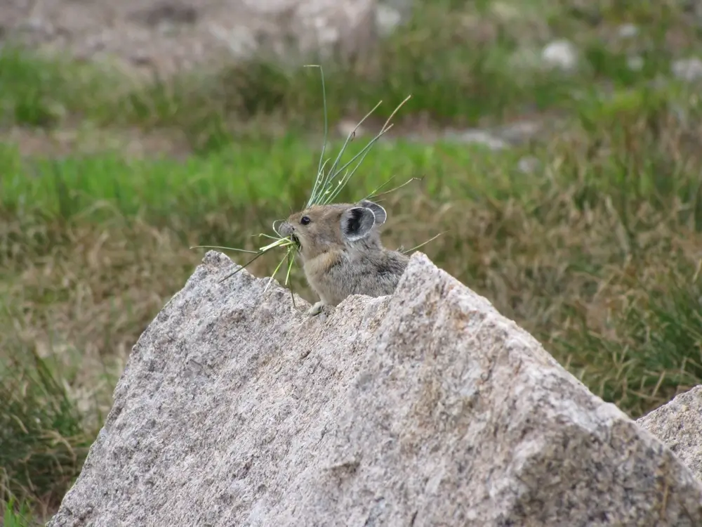 A pika haystack can contain as much as a bushel of plant matter. The pika often moves the pile to protect it from rain or to find a better drying spot. After the vegetation dries, the pika moves it to its den deep in the rocks.