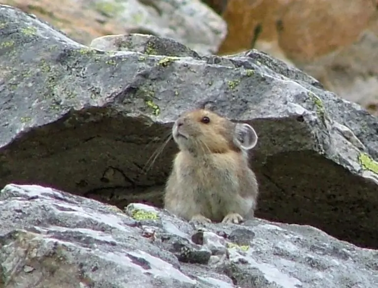 The American pika lives in rocky mountain areas and boulder-covered hillsides, usually at elevations between 8,000-13,000 feet (2,438-3,962 m). It makes its home in talus slopes (rock and boulder piles) at the base of cliffs.