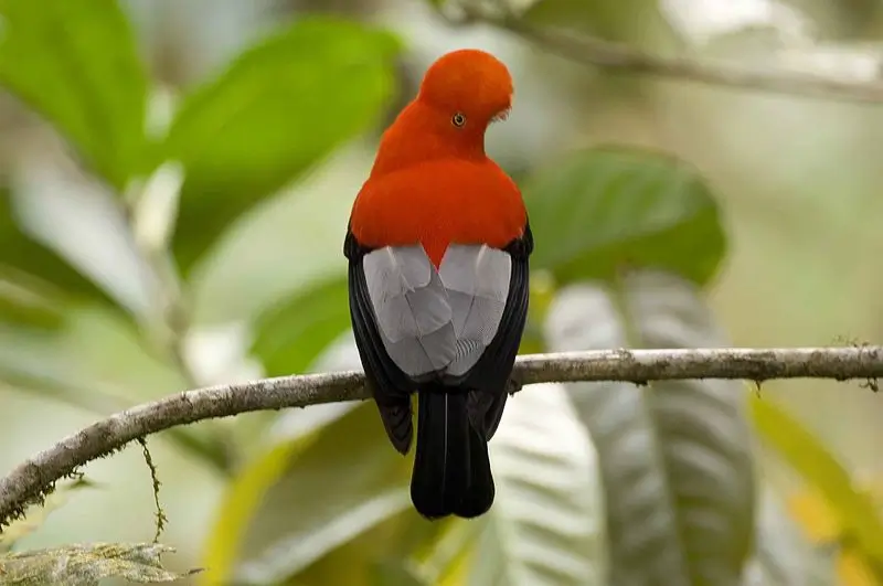 The Andean cock-of-the-rock is a medium-sized perching bird around 12-13 inches (30.5-33 cm) in length.