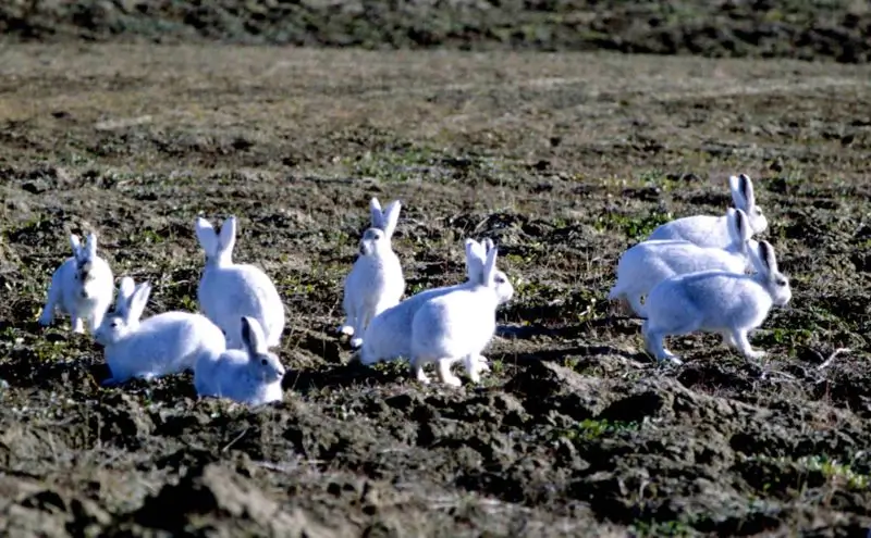 Arctic hares are nocturnal. They often gather in groups of 10 to 60 hares when they are feeding. In the northernmost parts of their range, they have been known to gather in groups of up to 300 individuals.