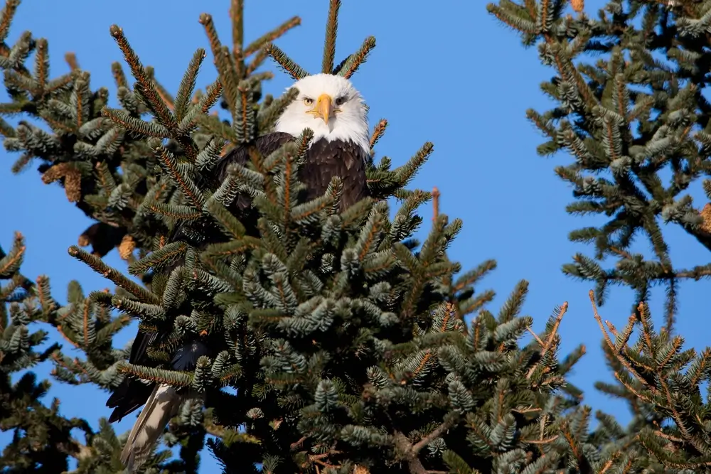 The bald eagle migrates away from areas where its water source freezes in the winter.