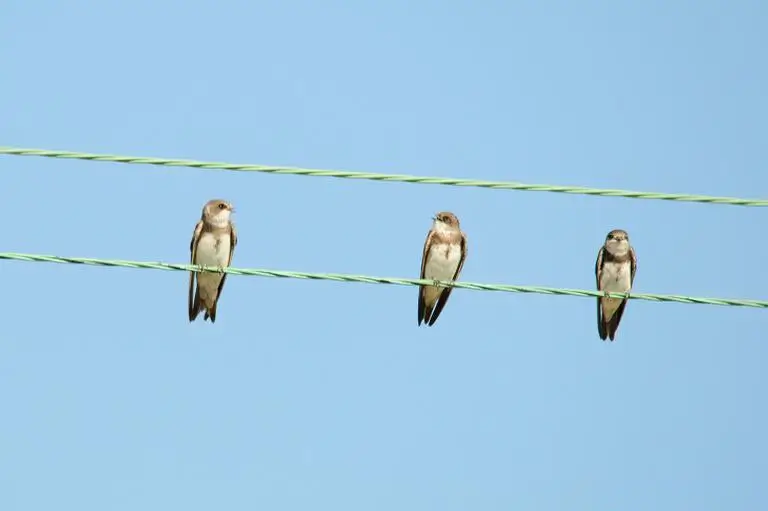 The bank swallow is the smallest swallow species in North America. It is 4.7-5.5 inches (12-14 cm) in length and has a wingspan of 9.8-13.0 inches (25-33 cm).