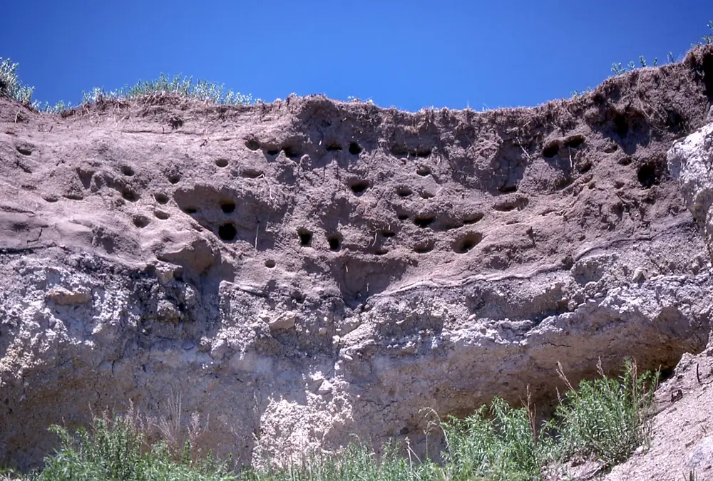 The bank swallow is a very social bird. It nests in large colonies with as many as 2,000 nests.