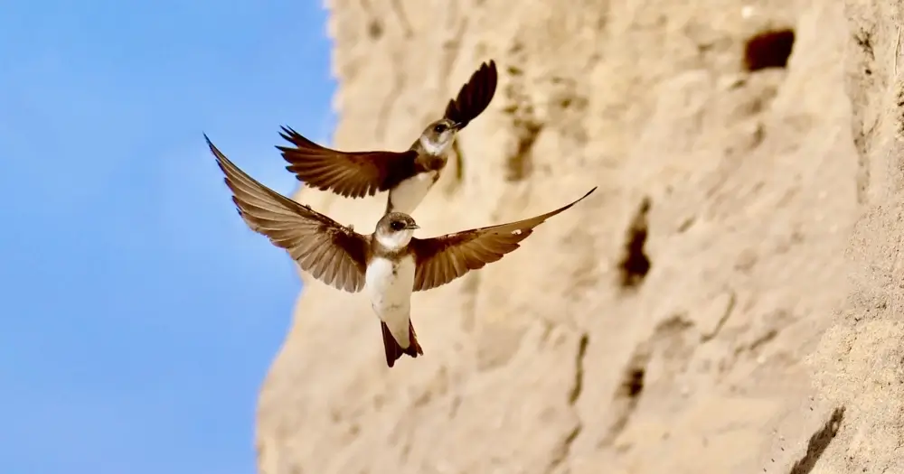 The bank swallow lives in low-lying areas along rivers, streams, ocean coasts, and reservoirs. Bank swallows need vertical banks and cliffs to form their colonies of nests.