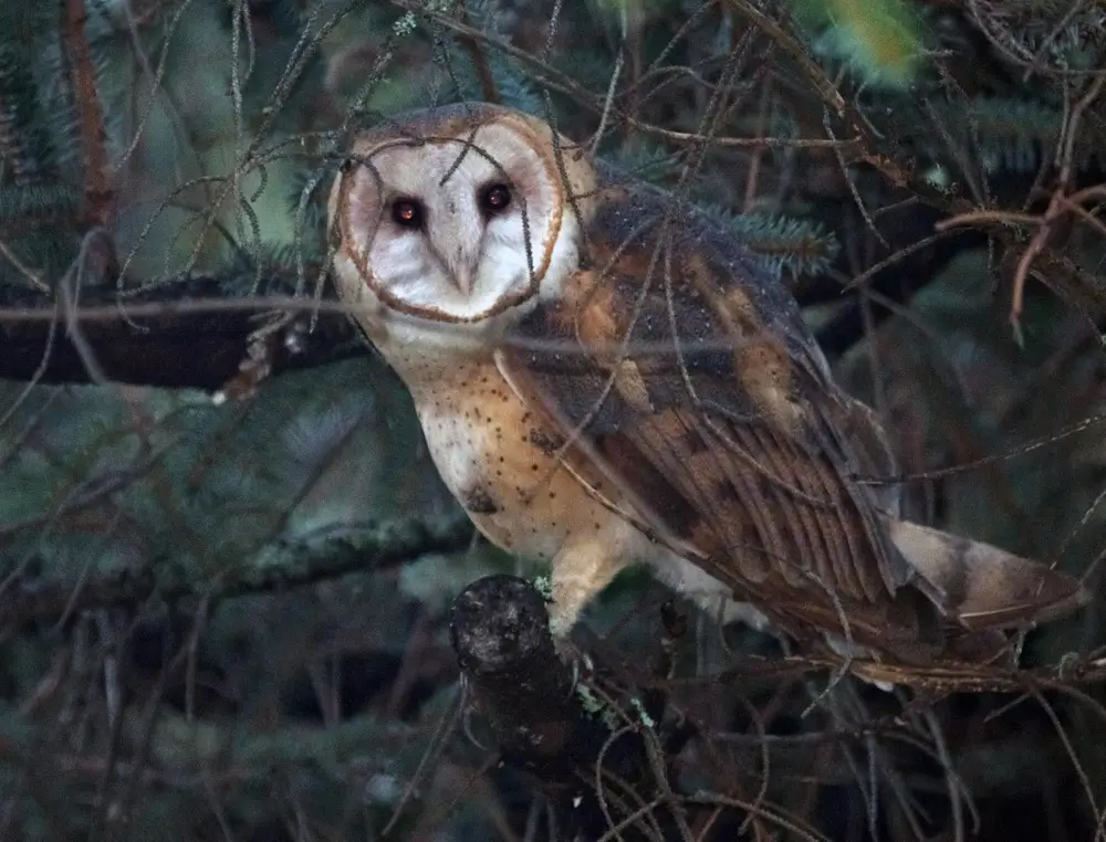 The barn owl is found in open areas, forest edges and clearings, farmland, and cities. It needs areas with open land for hunting.