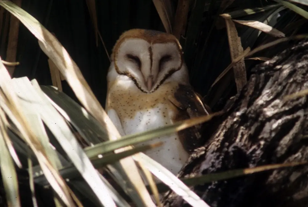 The barn owl is often found roosting in tree cavities, crevices in cliffs, or on riverbanks. It also roosts in buildings such as barns.