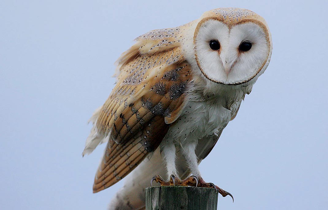 The barn owl is a nocturnal hunter. It eats small mammals like mice, shrews, voles, and rats. It also eats birds.