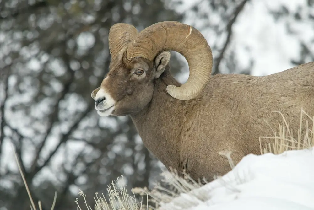 The bighorn changes its home range seasonally. In warm months, it grazes on mountain slopes; in colder months, it moves down to valleys.