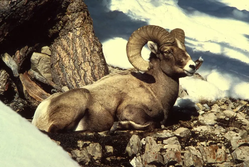 The bighorn is a good climber and jumper. Its hooves are hard around the outside and soft on the inside, which gives the bighorn traction on slippery rocks.