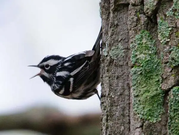 The black-and-white warbler is sometimes called the black-and-white creeper. It creeps around tree trunks and branches in search of insects and spiders hidden under the bark.
