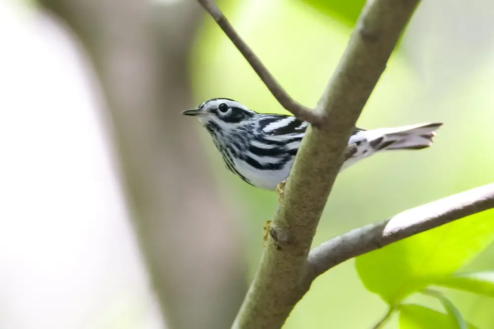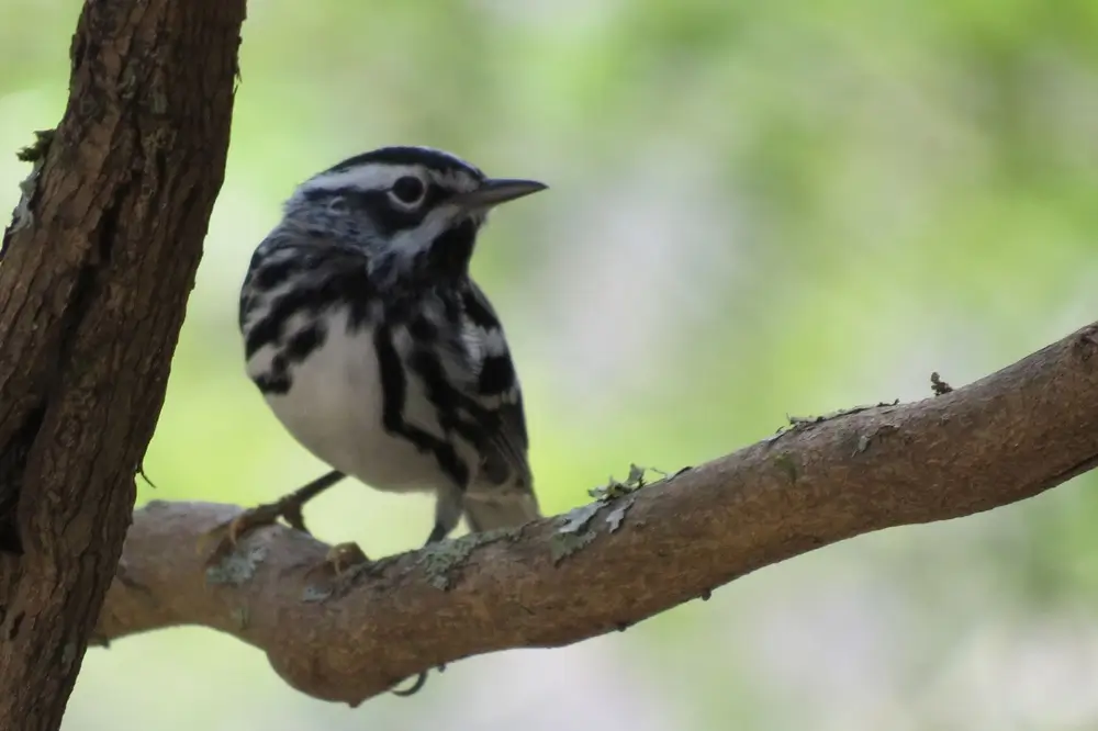 The black and white warbler is one of the first warblers to return in the spring.