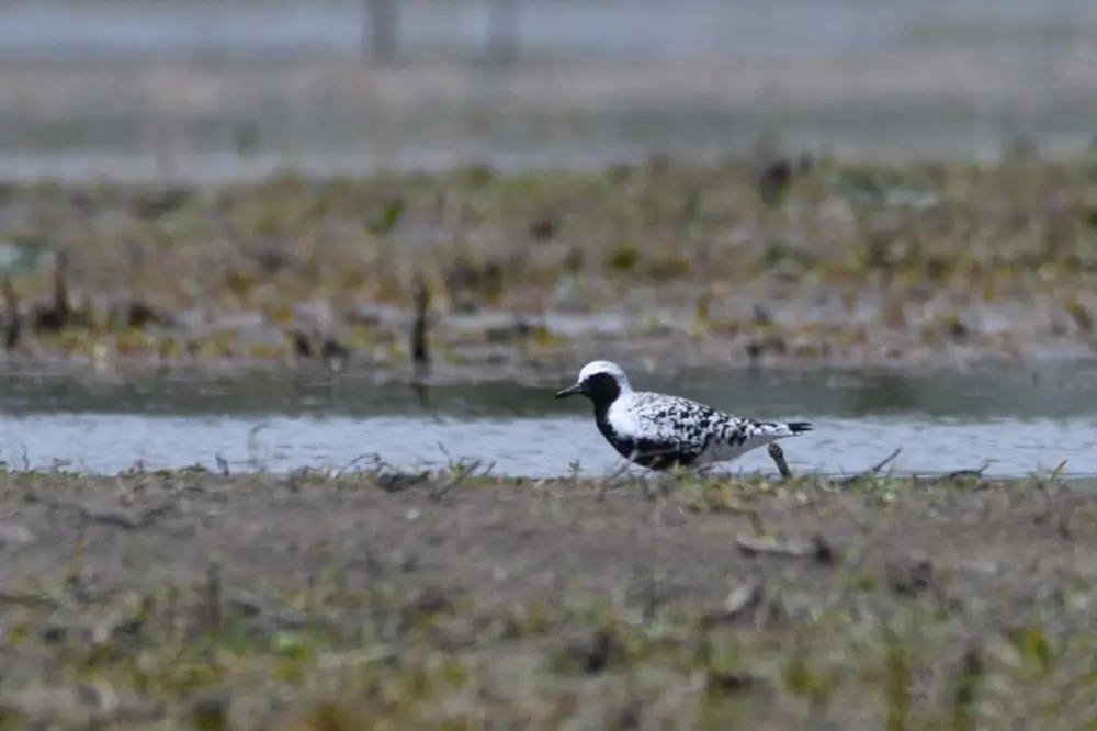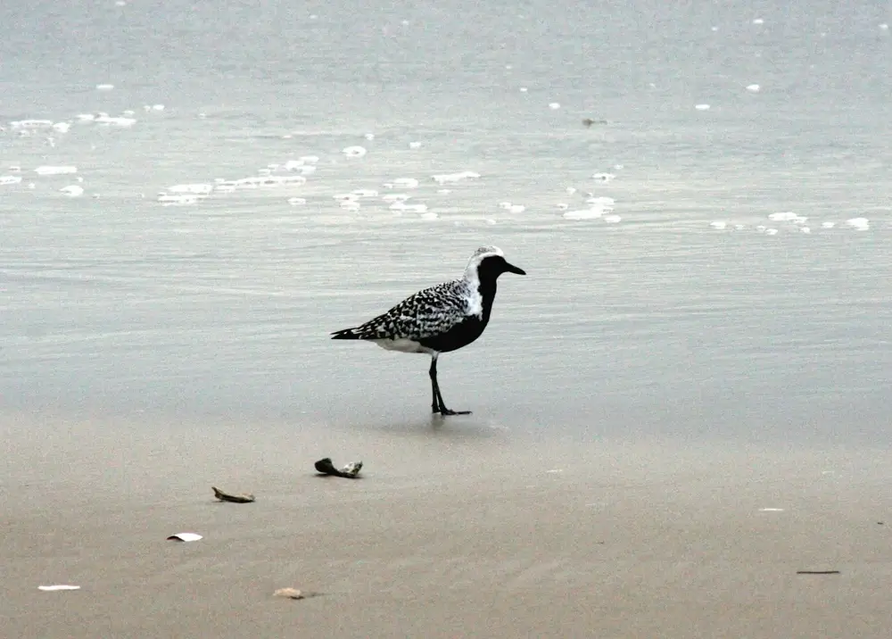The black-bellied plover looks similar to the American golden plover, but the American golden plover doesn’t have a white rump or wing stripe.