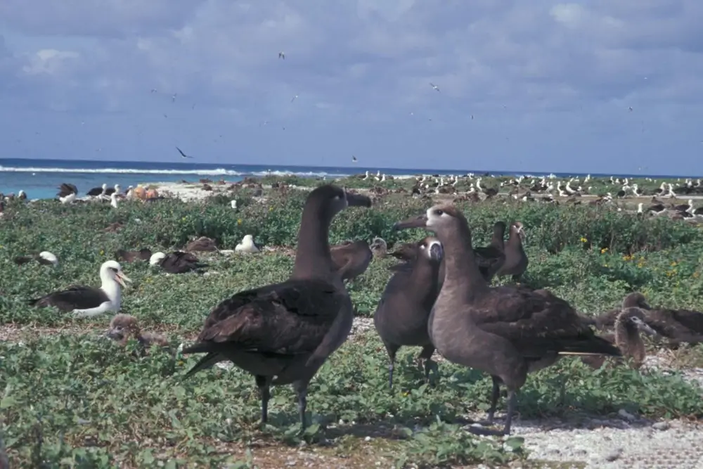 The black-footed albatross is found on open ocean waters and ocean islands.
