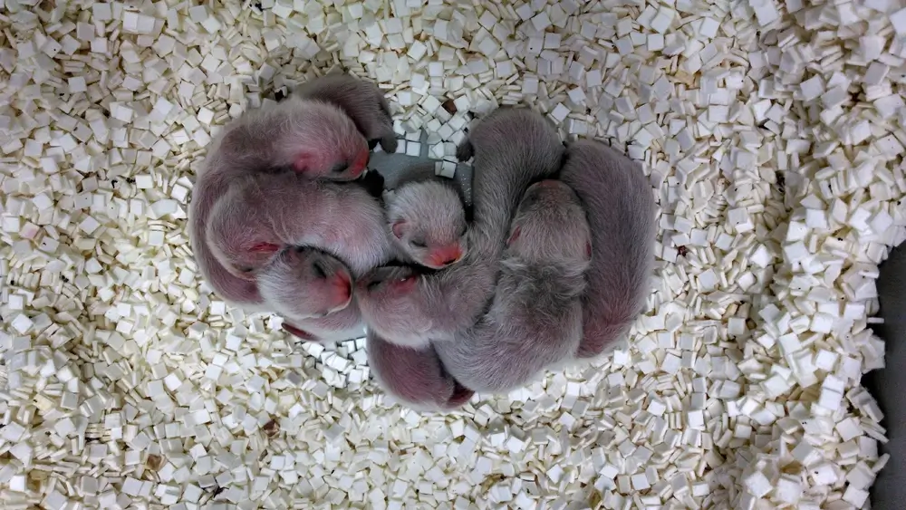 The black-footed ferret mates in March and April. The female has a litter of 3-5 young in a burrow in the ground 41 days after mating. Young ferrets are called kits.