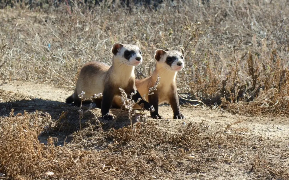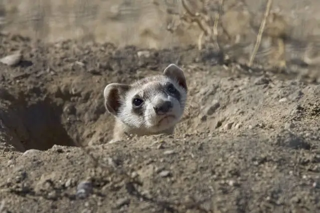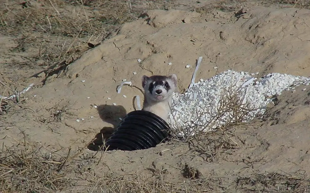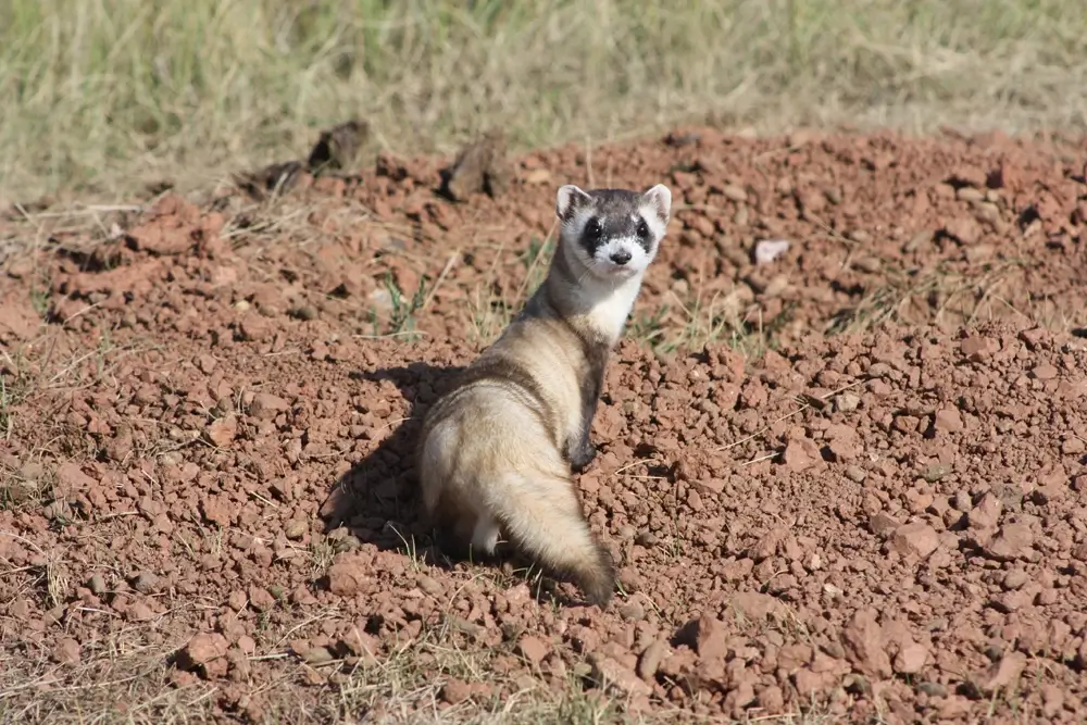 The black-footed ferret is found in short or middle grass prairies. It often makes its home in abandoned prairie dog burrows.