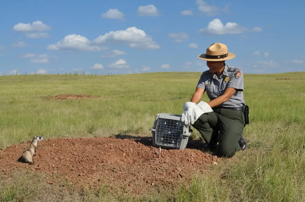 The black-footed ferret was first identified in 1851. As prairie dog populations decreased in the 20th century, black-footed ferret populations also decreased. Biologists thought the black-footed ferret was extinct in 1976 when the last known colony in South Dakota disappeared. In 1981, a group of about 100 black-footed ferrets was found near Meeteetse, Wyoming. All but 18 of those black-footed ferrets died of distemper. The remaining ferrets were captured and bred in captivity, and since 1991 ferrets descended from that original group have been released in the wild in Arizona, Colorado, Montana, South Dakota, Utah, and Wyoming in an effort to reestablish the population in the wild.