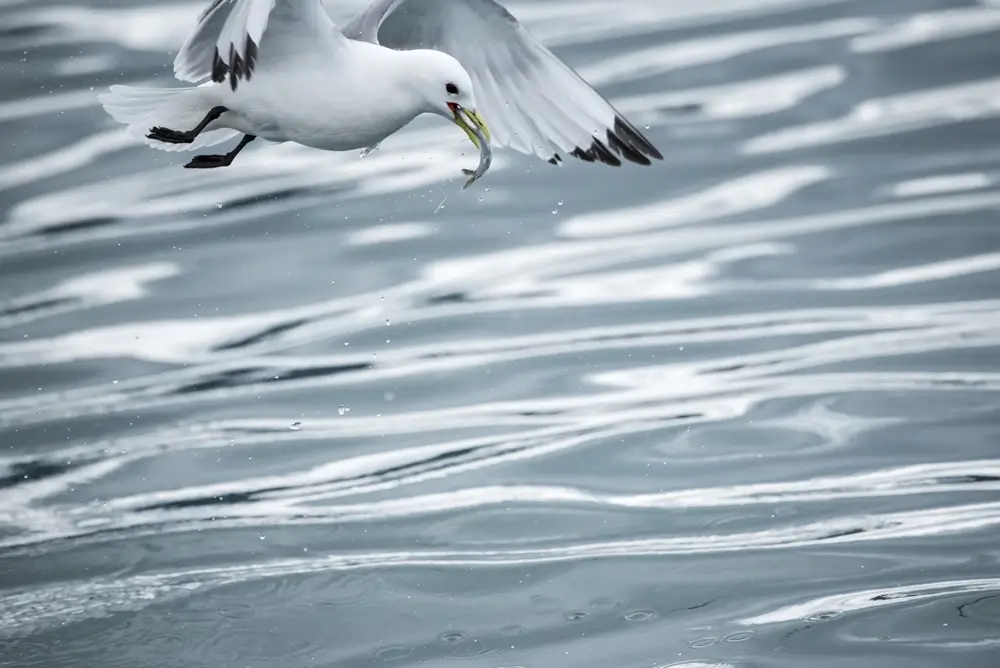The black-legged kittiwake is the only gull that dives and swims underwater to capture food.