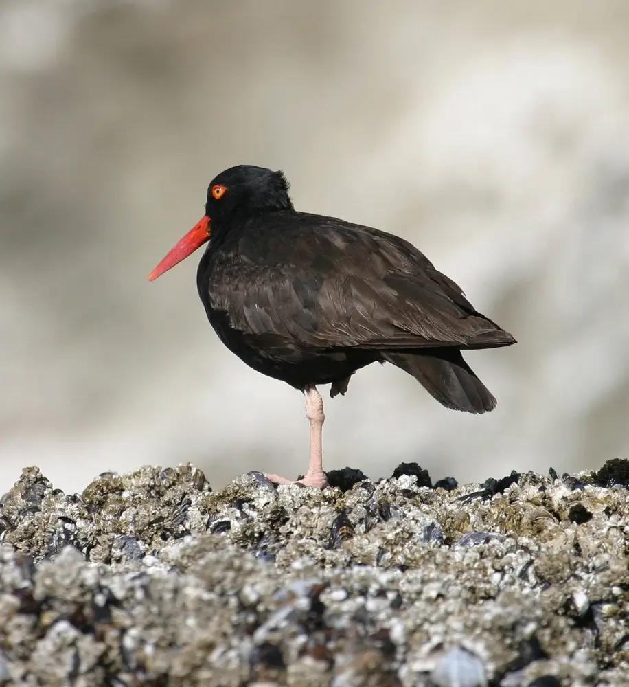 The black oystercatcher eats a variety of invertebrate marine life, including mussels, whelks, and limpets. Despite its name, it rarely eats oysters.