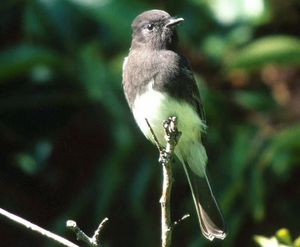 The black phoebe is a small tyrant flycatcher that is 6-7 inches (15-18 cm) in length.