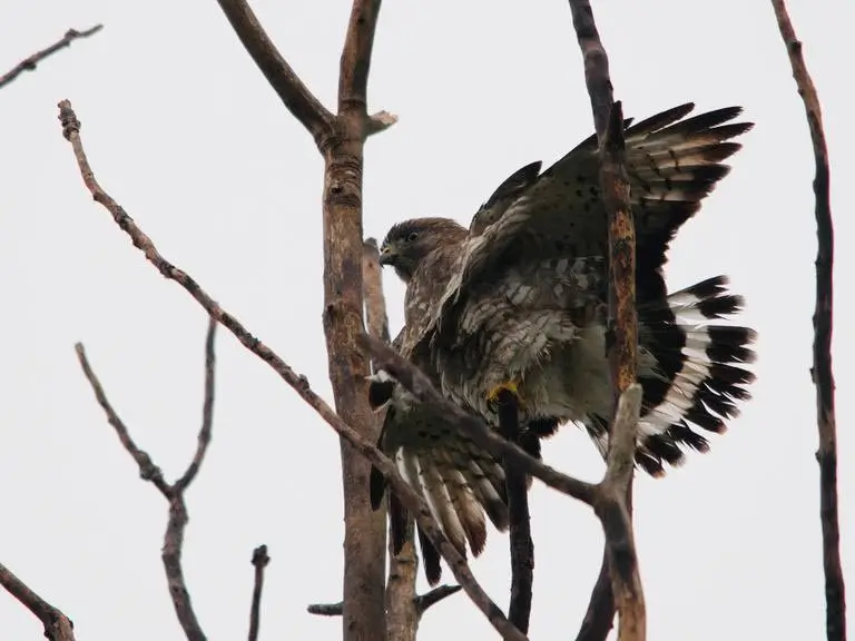 Normally, the broad-winged hawk is a solitary and territorial bird, but during migration, that changes. The broad-winged hawk is a long-distance migrator. In the fall, they gather in groups called kettles. Kettles can have tens of thousands of birds in them.