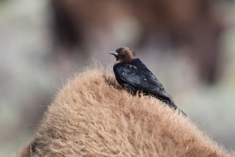 The cowbird gets its name because it is often found feeding around herds of cows, eating the insects they disturb.