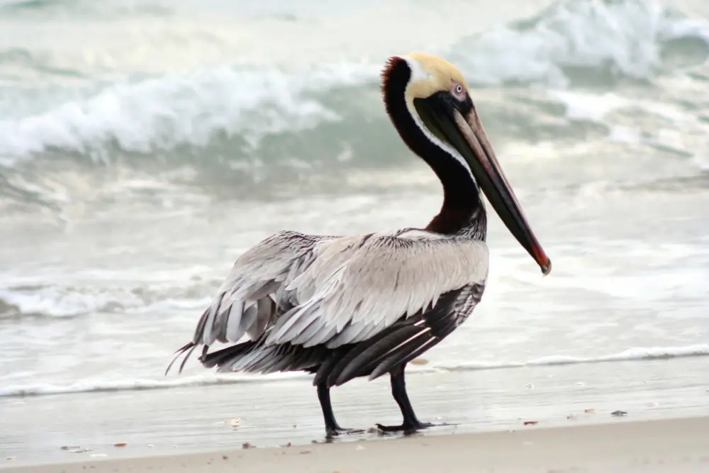 The brown pelican is found on the Atlantic, Pacific, and Gulf Coasts.