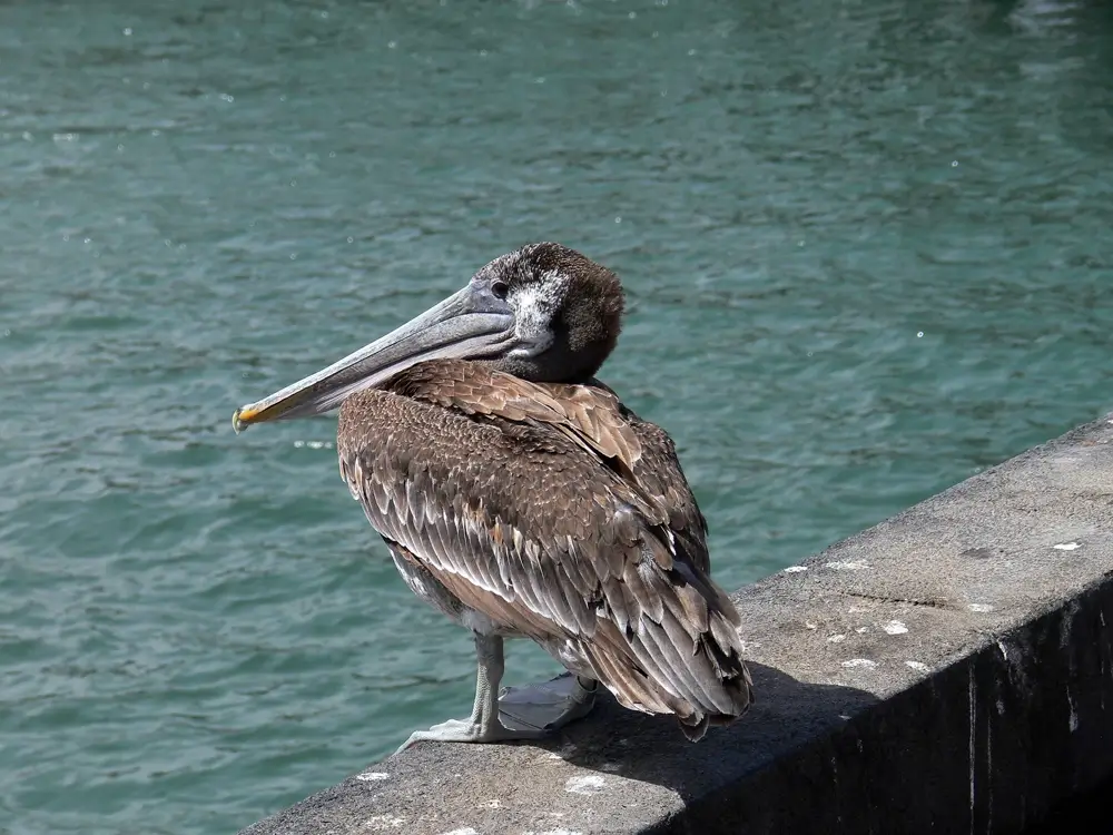 The brown pelican is about 3.3-4.5 feet(1.0-1.4 m) tall with a wingspan of around 6.6 feet (2 m).