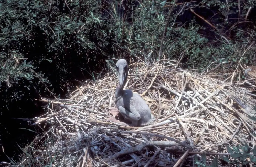 If the nest is on the ground, it may be a simple scrape in the ground, or it may be made of sticks, reeds, and grass, like a tree nest. The chicks just hop out of the nest and walk around outside of the nest when they are about a month old. If the nest is in a tree, the chicks leave the nest when they are 2-3 months old.
