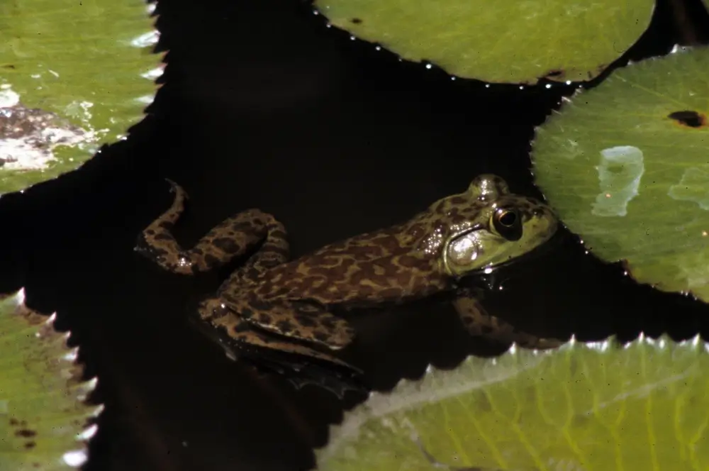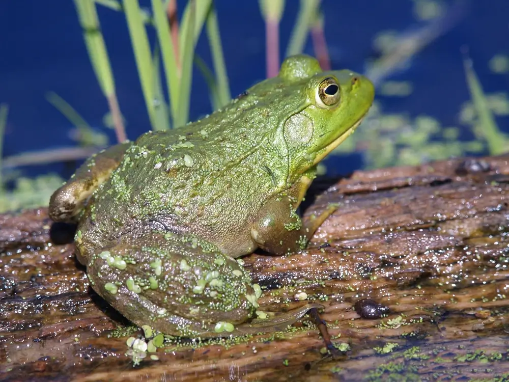 The bullfrog is the largest frog in North America. It is 3-6 inches in length. Females are usually larger than males. Its color can range from light green to dark green to dark brown. Some bullfrogs have patterned bodies, others are solid in color. Its underside is pale yellow or white and may be lightly patterned.