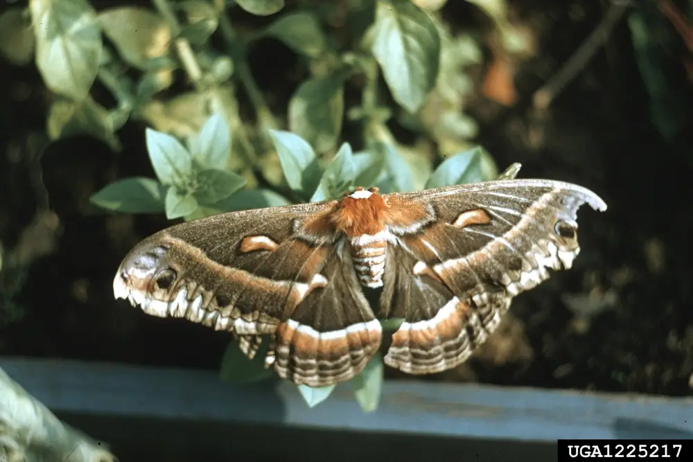 The cecropia moth is found in open areas with trees.