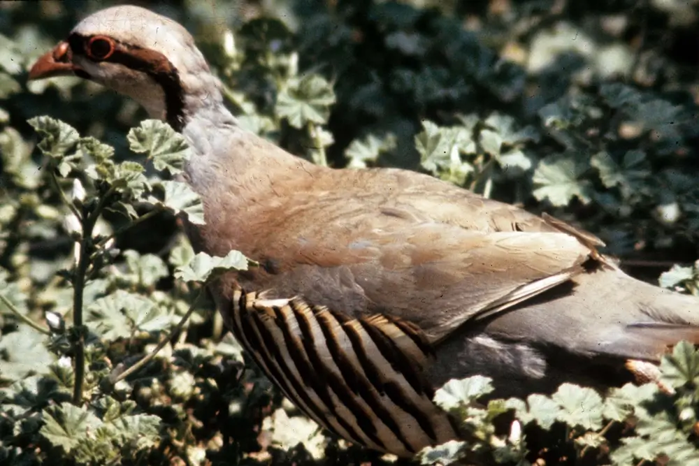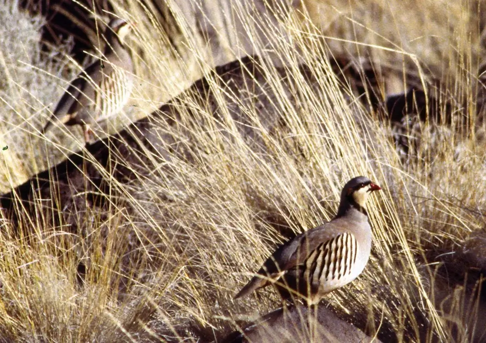 Except for during the breeding season, chukars live in coveys of up to 40 birds.