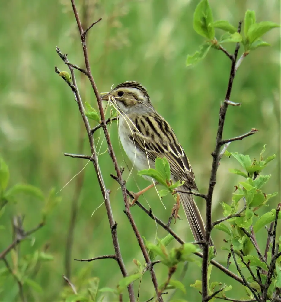 The clay-colored sparrow is found in brushy grasslands and prairies.