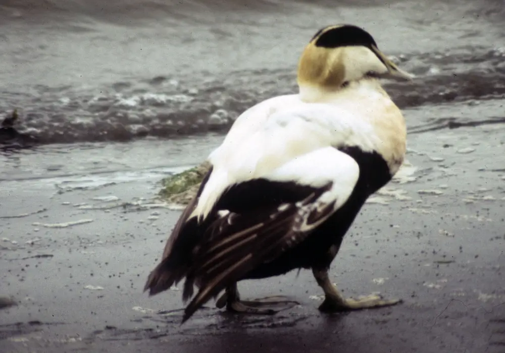 The down of the common eider is very soft and thick and is good insulation from cold ocean waters.