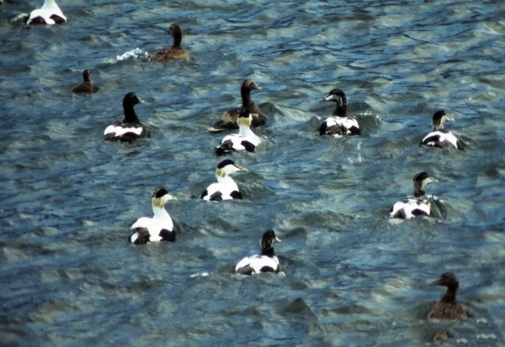 The common eider is a very social bird and often gathers in large flocks, especially during the non-breeding season. A common eider flock can contain hundreds of birds.