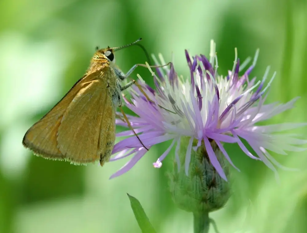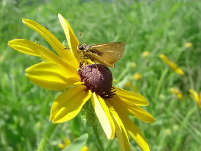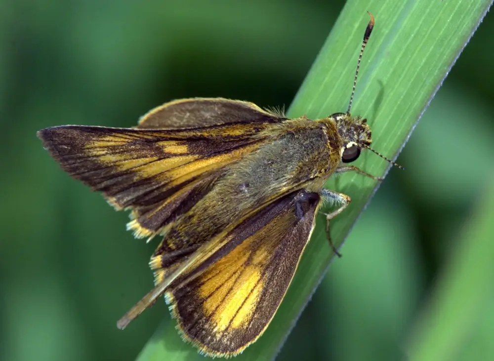 The Delaware skipper caterpillar eats a variety of grasses, including switchgrass, bluestem, and woolly beardgrass.