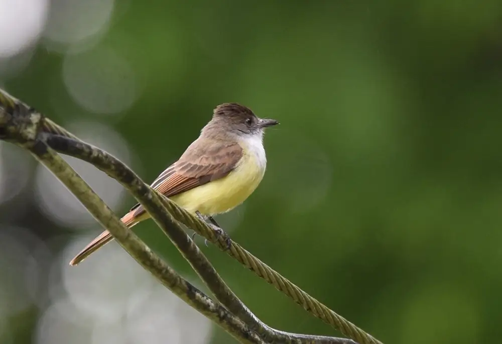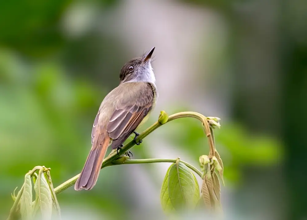 Dusky-capped flycatchers can be identified by their long, mournful, and repeated “wheeeuu” call.