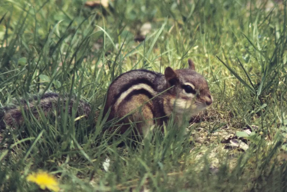 The name chipmunk is probably derived from both the chattering sound the chipmunk makes and from the Algonquian word atchitamon, which means “one who descends trees headlong.”