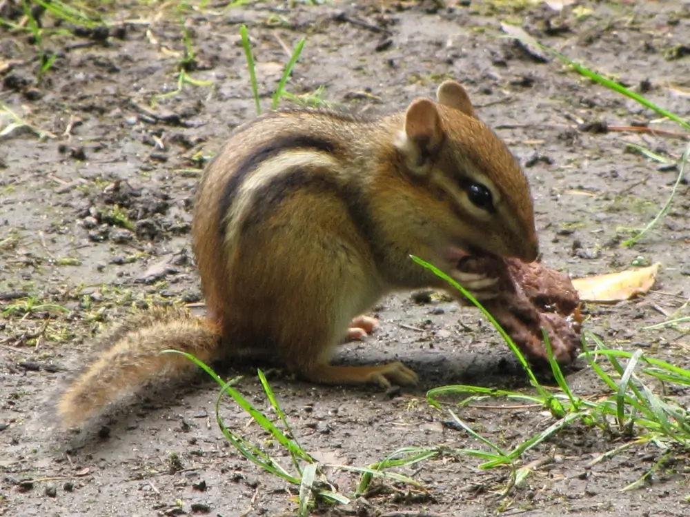 The eastern chipmunk spends most of its waking hours gathering and storing food for the winter. The eastern chipmunk is also very vocal and can be heard chattering as it gathers food.