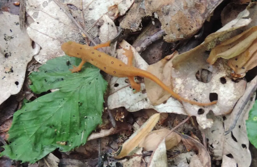 In early spring, eastern newts leave the water to mate. After mating, they return to the water. The female lays her eggs on vegetation in the water. The eggs hatch in 1-2 months.