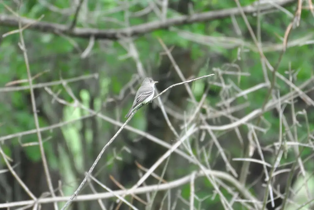 The eastern wood-pewee is very hard to spot, but can be identified by its “pee-ah-wee” call.