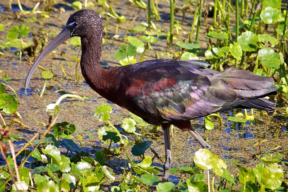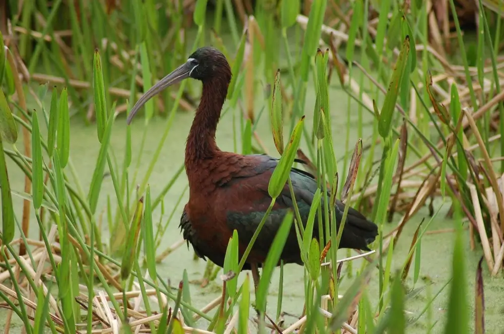 The glossy ibis is relatively new to North America. It came here from Africa. It probably flew across the Atlantic to South America and then slowly expanded its range to North America.