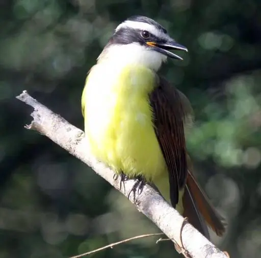 The great kiskadee is a large member of the flycatcher family. It is 9-10 inches (22.9-25.4 cm) in length with a wingspan of around 14 inches (35.6 cm).