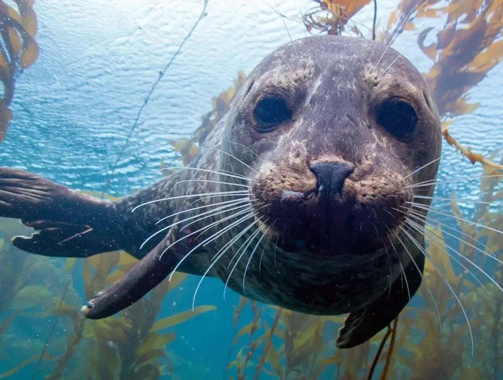 Harbor seals can swim right-side up or upside-down at speeds of up to 12 mph (19 kph).